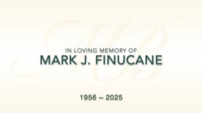 He was predeceased by his parents, James and Rosemary McCann Finucane; brother-in-law, Keith M. Stolzenburg; and in-laws, Dr. Joseph A. and Geraldine C. LaNasa. He is survived by his beloved wife, Mary (LaNasa); sister, Rosanne K. Stolzenburg; niece, Anna R. Stolzenburg; nephew, Eric M. Stolzenburg; and extended family, including Geraldine (Dr. Daniel E.) Anderson, Paula (Vincent) Monaco, and Pia (Eugene P.) O’Connor. He also leaves behind a large community of friends, godchildren, nieces, nephews, cousins and colleagues who were lucky to know him.